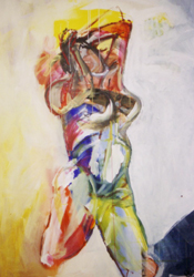 Hannes Kreissl ist derjenige, der sich vorwiegend der weiblichen Form verschrieben hat, die er in fast comic-artiger Buntheit auf die Leinwand wirft. Doch auch Symbolisches wird dem Betracher geboten.